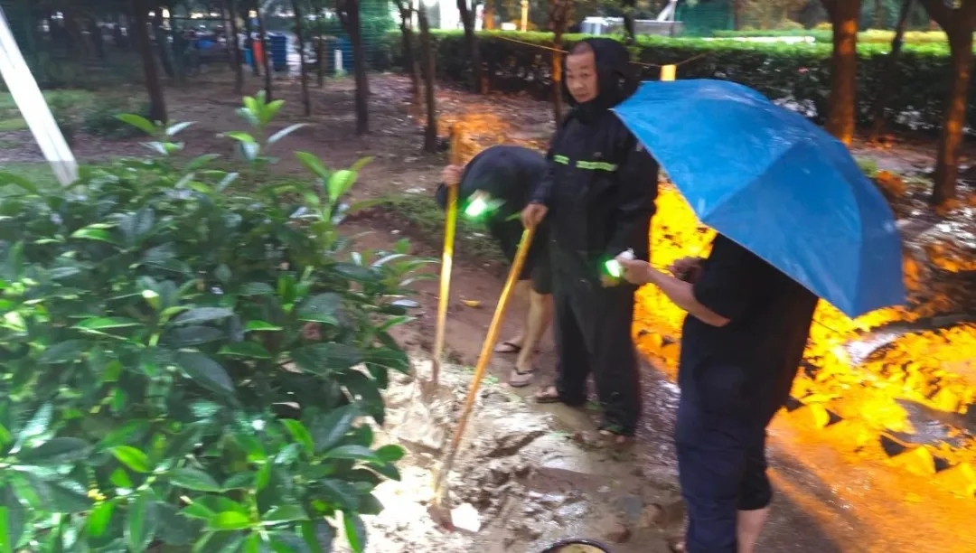 黃錦物業(yè)各項(xiàng)目聞“汛”而動(dòng),提前嚴(yán)密部署,統(tǒng)籌全局,24小時(shí)輪流值班,備足沙袋,查設(shè)備、排漏點(diǎn)、通管道……筑起一道道防護(hù)墻。在大雨來(lái)臨之時(shí),沖鋒一線,不斷巡查,排查隱患,用雙手清理下水口雜物,雨中的這些畫面令人感動(dòng)又心安。